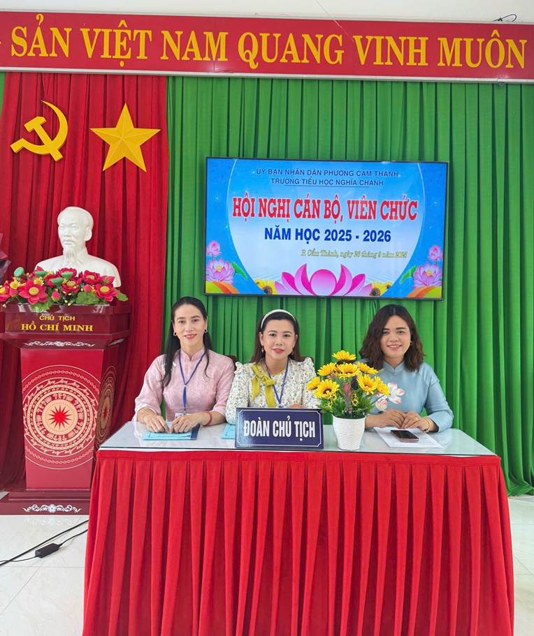 Sáng ngày 26/9/2025, trường Tiểu học Nghĩa Chánh đã tổ chức Hội nghị cán bộ, viên chức năm học 2025-2026 nhằm tổng kết, đánh giá kết quả thực hiện nhiệm vụ năm học 2024-2025, đồng thời đề ra phương hướng, nhiệm vụ trọng tâm năm học 2025-2026.