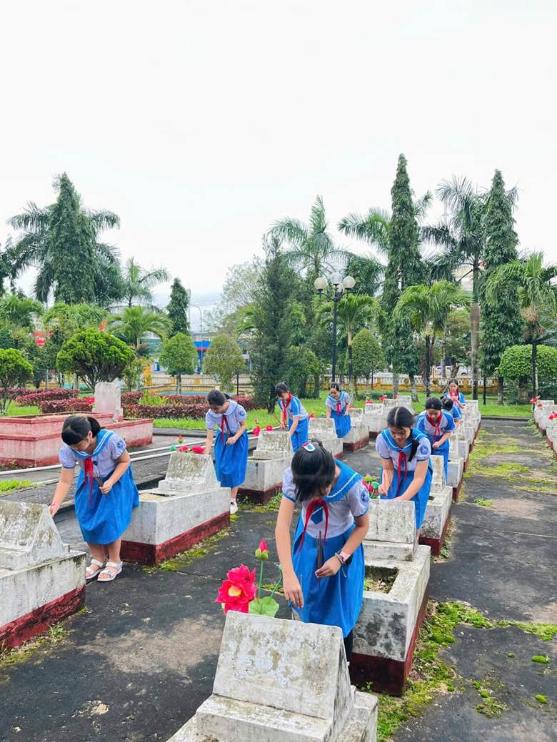 Song song với các hoạt động tuyên truyền, giáo dục truyền thống, Đoàn thanh niên cùng Liên đội còn tổ chức cho đoàn viên, đội viên, thiếu nhi tham gia chăm sóc, vệ sinh khuôn viên, thắp hương tưởng niệm các Anh hùng liệt sĩ. Hoạt động không chỉ thể hiện đạo lý “Uống nước nhớ nguồn” mà còn góp phần giáo dục các em ý thức trách nhiệm, lòng biết ơn đối với những hy sinh to lớn của các thế hệ cha anh.