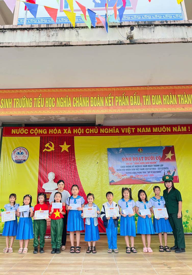 Hòa chung không khí phấn khởi của cả nước hướng tới kỷ niệm 81 năm Ngày thành lập Quân đội Nhân dân Việt Nam (22/12/1944 – 22/12/2025), trong những ngày qua, Trường Tiểu học Nghĩa Chánh đã tổ chức nhiều hoạt động ý nghĩa, thiết thực, thu hút đông đảo đoàn viên, thiếu nhi tham gia, qua đó góp phần giáo dục truyền thống cách mạng, bồi đắp lòng yêu nước và niềm tự hào dân tộc cho thế hệ trẻ.